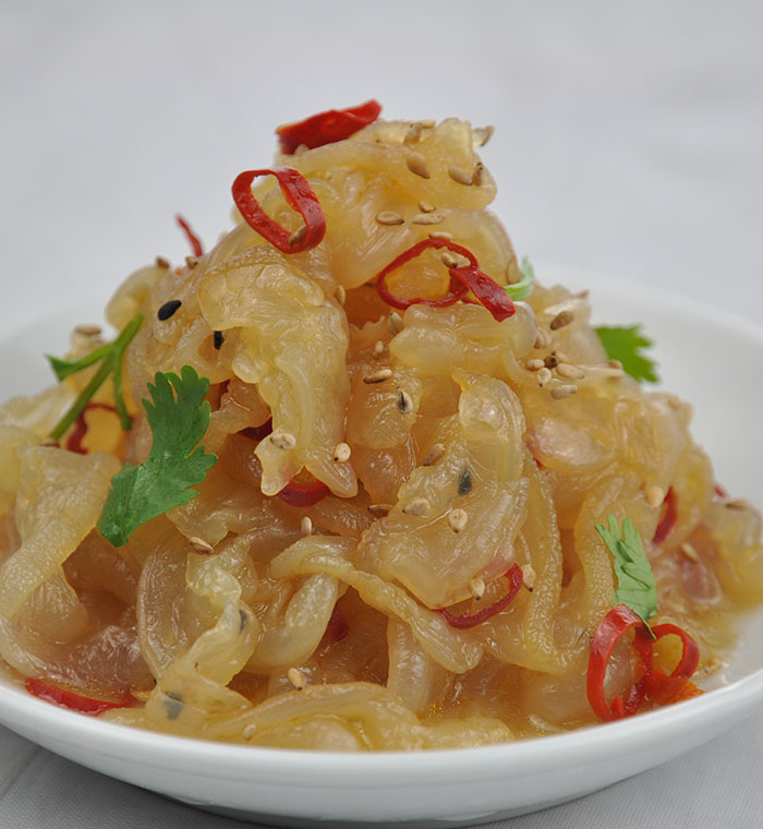 產(chǎn)品特點:精選優(yōu)質(zhì)海蜇,色澤清麗、晶瑩剔透,Q彈有嚼勁、清香酸甜好味道